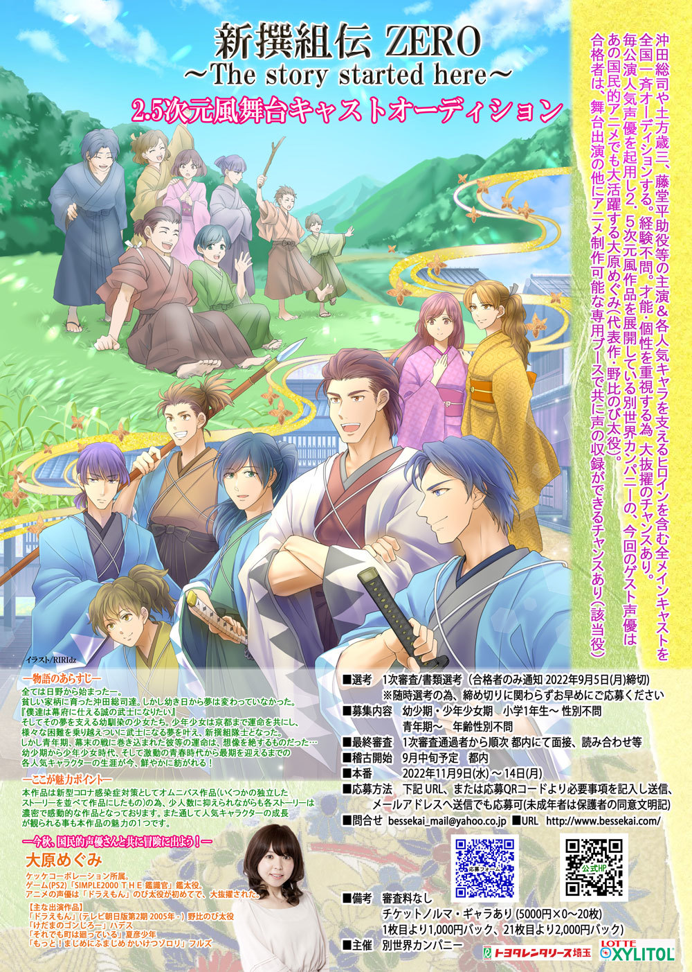 『新撰組伝 ZERO~The story started here~』では、沖田総司や土方歳三、藤堂平助役等の主演&各人気キャラを支えるヒロインを含む全メインキャストを男女演技経験を問わず全国から募集している。