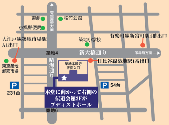 東京都中央区築地3-15-1 築地本願寺内第一伝道会館2F